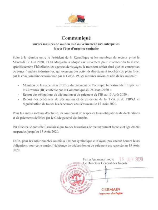 Soutien du Gouvernement aux entreprises face à l'état d'urgence sanitaire